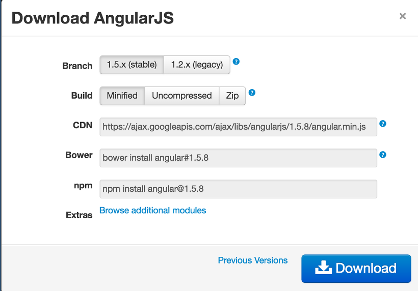 - CDN방식으로 추가하거나, bower, npm 등 어느 방법으로 다운받아도 상관없습니다.