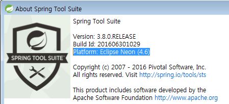 생각해보다가 설치된 STS 기반 플랫폼을 확인해보니 Eclipse Neon으로 4.6 !!