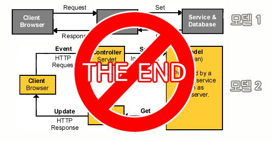 우리가 @MVC라는 이름 하에 DispatcherServlet 클래스를 web.xml에 등록하는 순간 스프링이 있기 전 힘겹게 배웠던 모델1, 모델2는 이제 완전한 추억거리가 되고 말 것입니다. @MVC는 설계자체를 모델1 방식으로 할 수 없게 만드는 데다 그동안 구현하기는 까다롭지만 활용성이 높다고 배웠던 모델2 방식을 모델1보다 쉽게 만들 수 있도록 환경을 조성해주기 때문입니다. 게다가 정확히 따지자면 @MVC는 모델 2방식의 설계도 아닙니다. 다만 우리가 @MVC로 코드를 작성하는 방식이 모델 2와 비슷해서 모델2 방식이라고 부르는 것 뿐이죠.