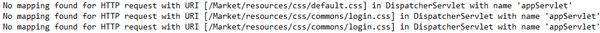 만약 이런 처리를 해주지 않는다면 위와 같은 에러가 로그에 기록될 것입니다. 디스패처 서블릿이 해당 요청을 처리할 컨트롤러를 찾지 못했다는 에러메시지죠. 이 문제를 해결하기 위한 방법이 몇가지 있습니다. 첫번째 방법은 아래와 같이 디스패처 서블릿이 처리할 URL과 자바와 관련없는 리소스들의 영역을 분리시키는 것입니다.